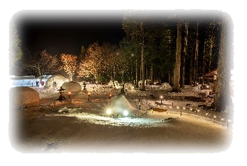 白山神社境内に大小様々なかまくらが登場。木々に囲まれた神秘的な境内とともに灯りが灯された幻想的な雰囲気をお楽しみいただけます。
